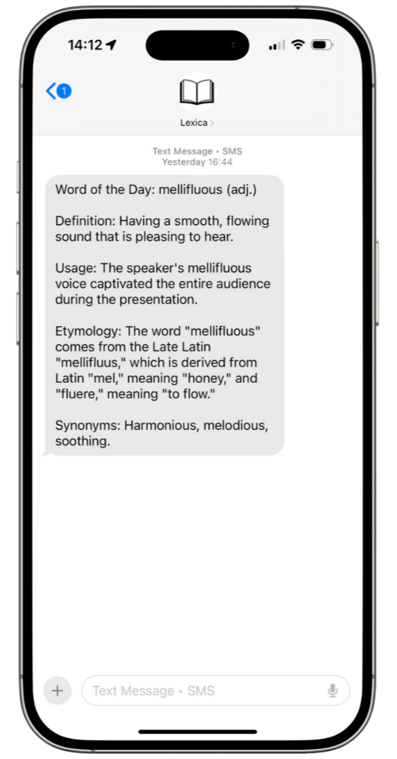 We aim for simplicity. Lexica will send a text directly to your phone with the word of the day.